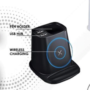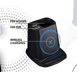 Model no: TGZ-720 Pen holder, wireless charger ( output 5W ) Dual USB hub (5V = 2A ) Mobile stand & pen holder USB light & fan Size : 8.8 x 9.8 x 8.8 cms Colour : White , Black